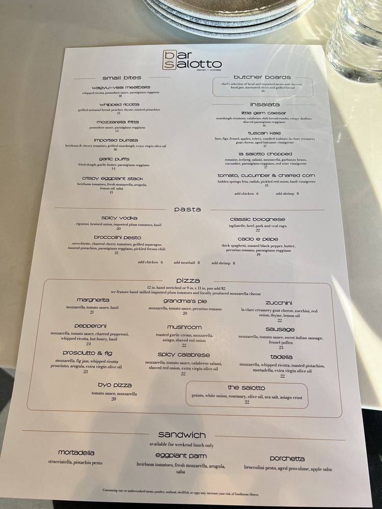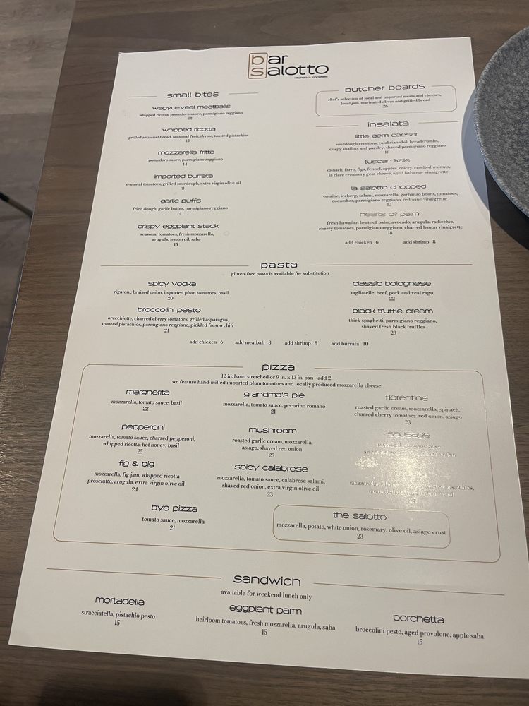 Bar Salotto is an Italian bar and pizza place located in Arlington Heights. The menu offers a variety of options, including Butcher Boards with chef's selection of meats and cheeses, Small Bites like crispy eggplant stack and garlic puffs, and Imported Burrata with seasonal tomatoes. The atmosphere is trendy and classy, with moderate noise levels and outdoor seating available. The restaurant also offers catering, private dining options, and happy hour specials. The dishes are thoughtfully prepared and flavorful, showcasing the best of Italian cuisine. The attention to detail in the menu and the overall experience at Bar Salotto make it a must-visit spot for Italian food lovers.